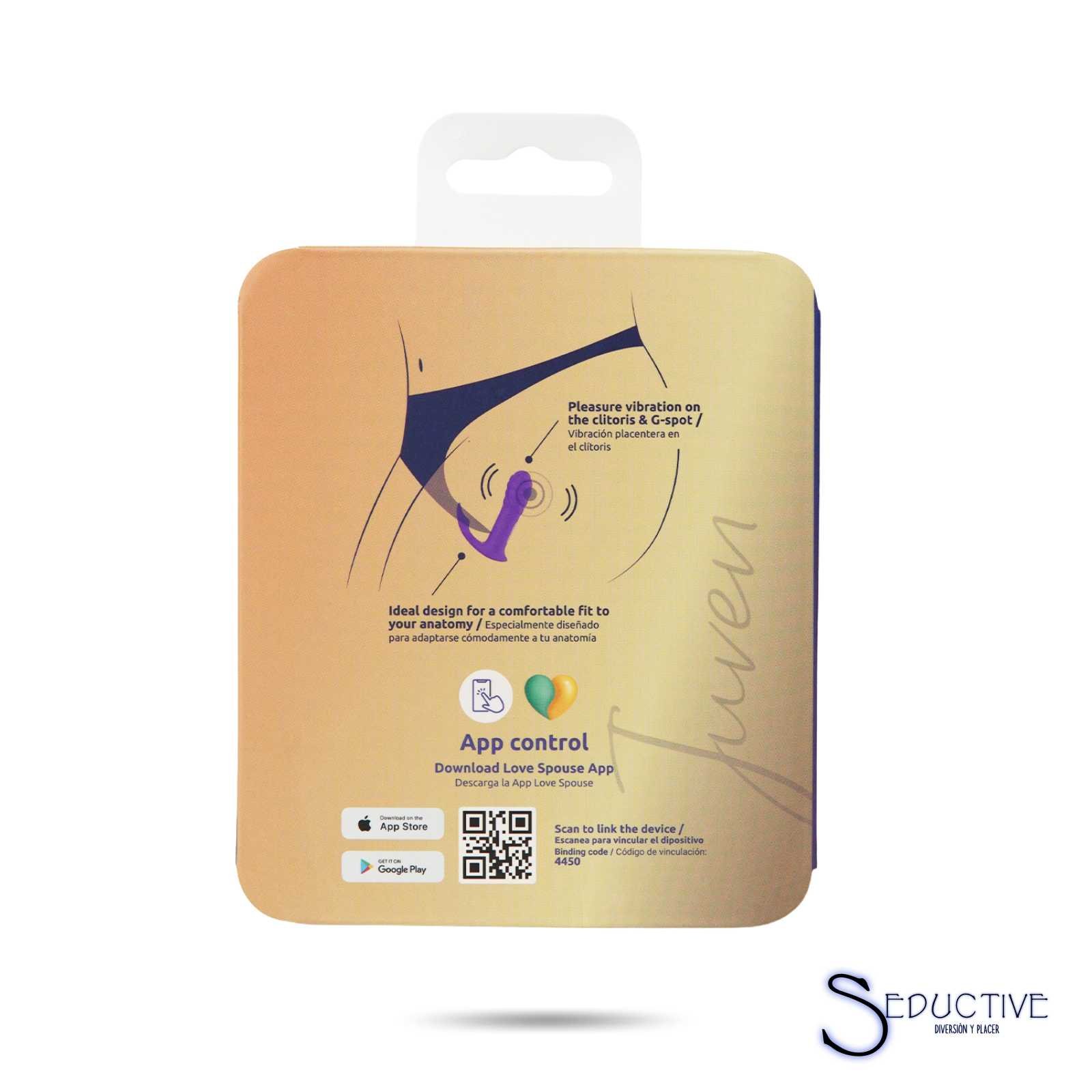 El Panty Vibrador Juven está diseñado para adaptarse perfectamente a tu cuerpo. Con 10 modos de vibración, recubierto de silicona suave y recargable, es completamente discreto y resistente a salpicaduras. Además, es compatible con app, lo que lo convierte en un juguete interactivo. Disponible para Android y iOS.